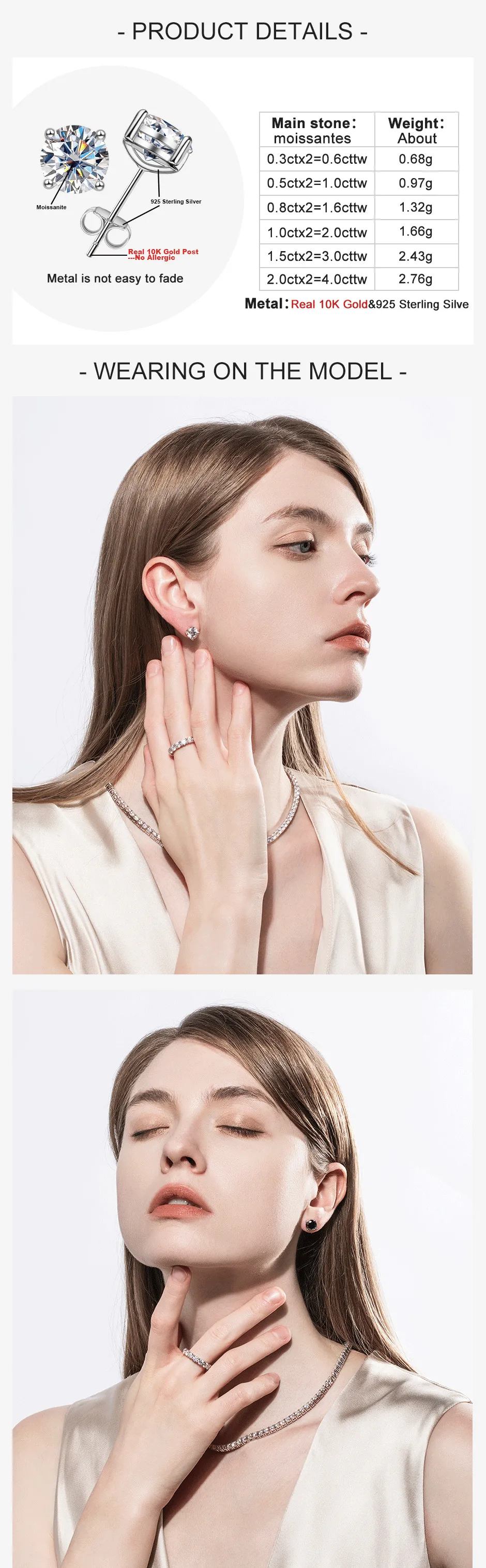 TY 0.3-2CT Moissanite Earrings