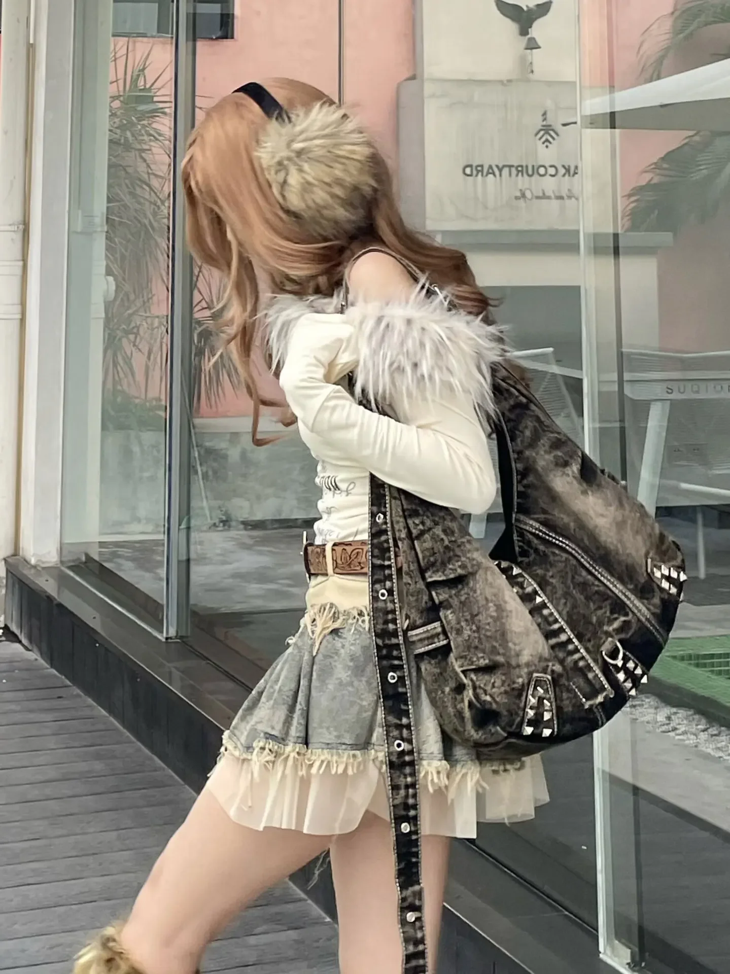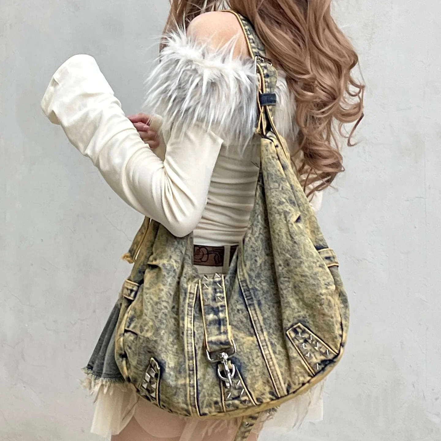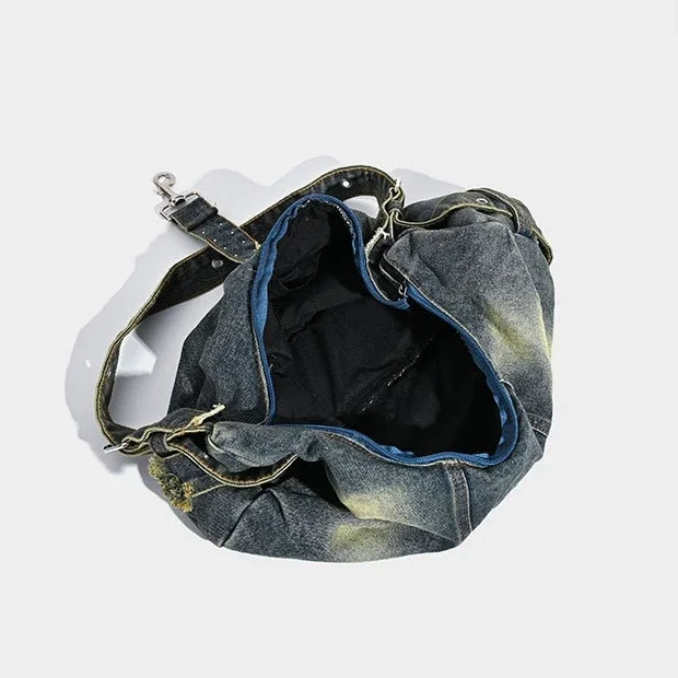 Washed Denim rivet Shoulder Bag